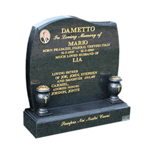 Lawn cemeteries can provide the opportunity to design your own memorial, or choose from our wide range of styles and granite colours. Any style can be personalized with the addition of the many imported embellishments available. Any religious icons can be replicated as gold, etched or hand carved. Premium V cut gold lettering with enrich the memorial. Our experienced consultants can meet you at the cemetery or in your home to discuss the various options and the relevant cemetery regulations.
